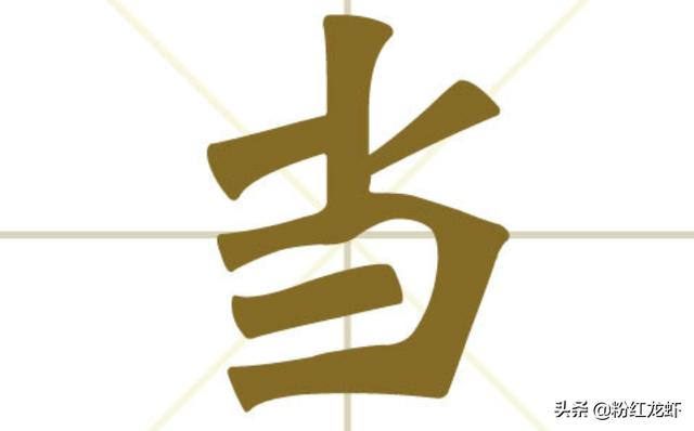 “当”,初见于说文小篆时代,从田,像农田;尚声,尚有相合义,表示两田价值相称。后来逐渐见于隶书中,最后演化为楷书体简化版的“当”。