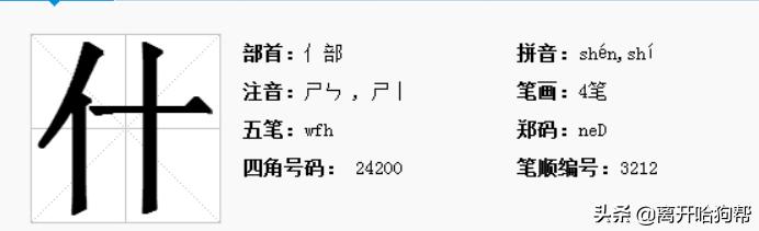 组词:什锦砂锅,物什,什面,什物,什锦、杰什、什伯、克什……
