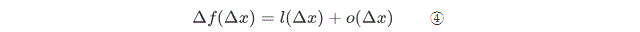 当 Δx 趋近于 0 时, (Δf(Δx) - l(Δx)) / Δx 也趋近于 0(即,Δf(Δx) - l(Δx) 比 Δx 更快的趋近于 0) ③‘