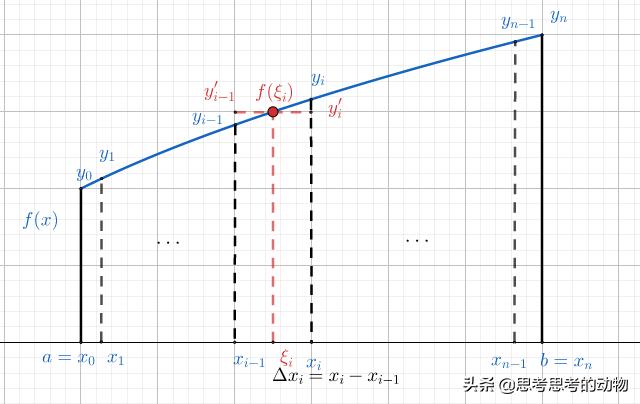 这样将 一个大的 曲边梯形 Λ = ay₀y_nb 分割为 一系列小的 曲边梯形: