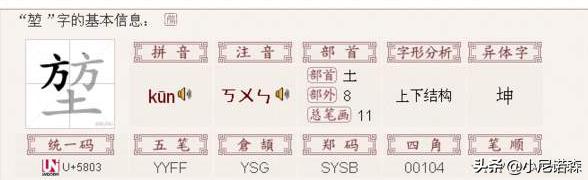 基本释义:1、堃,由方方土构成,拼音kūn,。