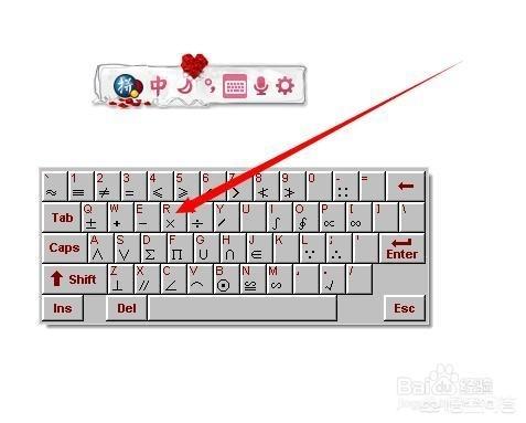 五、第一行第三个就是乘号了,鼠标点击此符号可以打出。