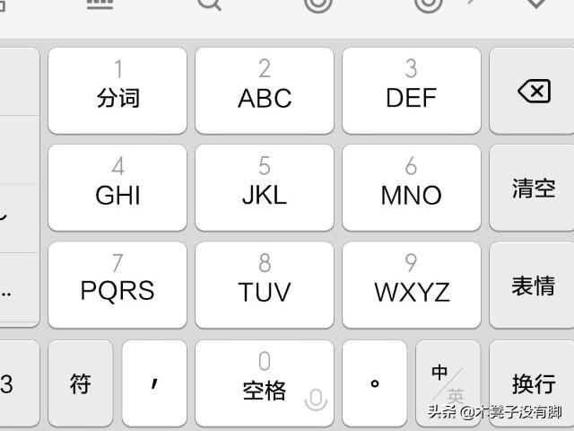 7、点击左下角的返回可返回九宫格键盘。按钮“123”可以打开数字键盘,123右侧的按钮为空格键,中/英为中文英文切换。