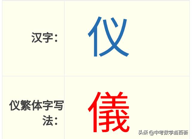 简体字:仪,5画,读音yí,其繁体字为:儀,15画。简繁对照见下图: