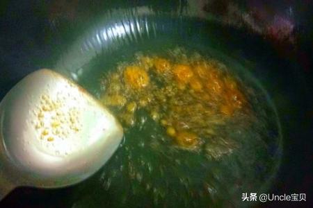 取一口铸铁锅,烧热倒入适量大豆油