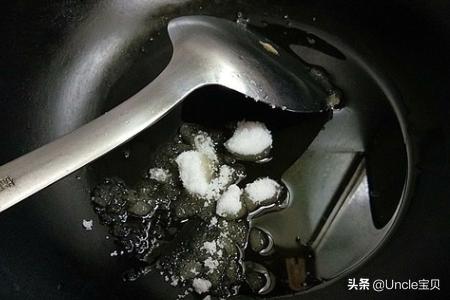 5、锅中放2茶匙食用油,放入大约25克白糖炒糖色。