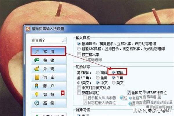 3在“常用”标签页下勾选“繁体”单选框按钮,如图所示。