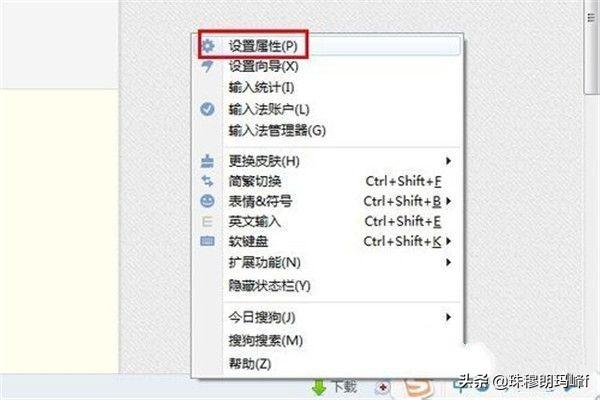 2若想通过输入法输入“书”字的繁体字,则右击输入法,选择“设置属性”。
